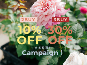 今回は、おへやで育てるばらを2つご購入で10%OFF、3つ以上のご購入で30%OFFになるキャンペーンを開催します!