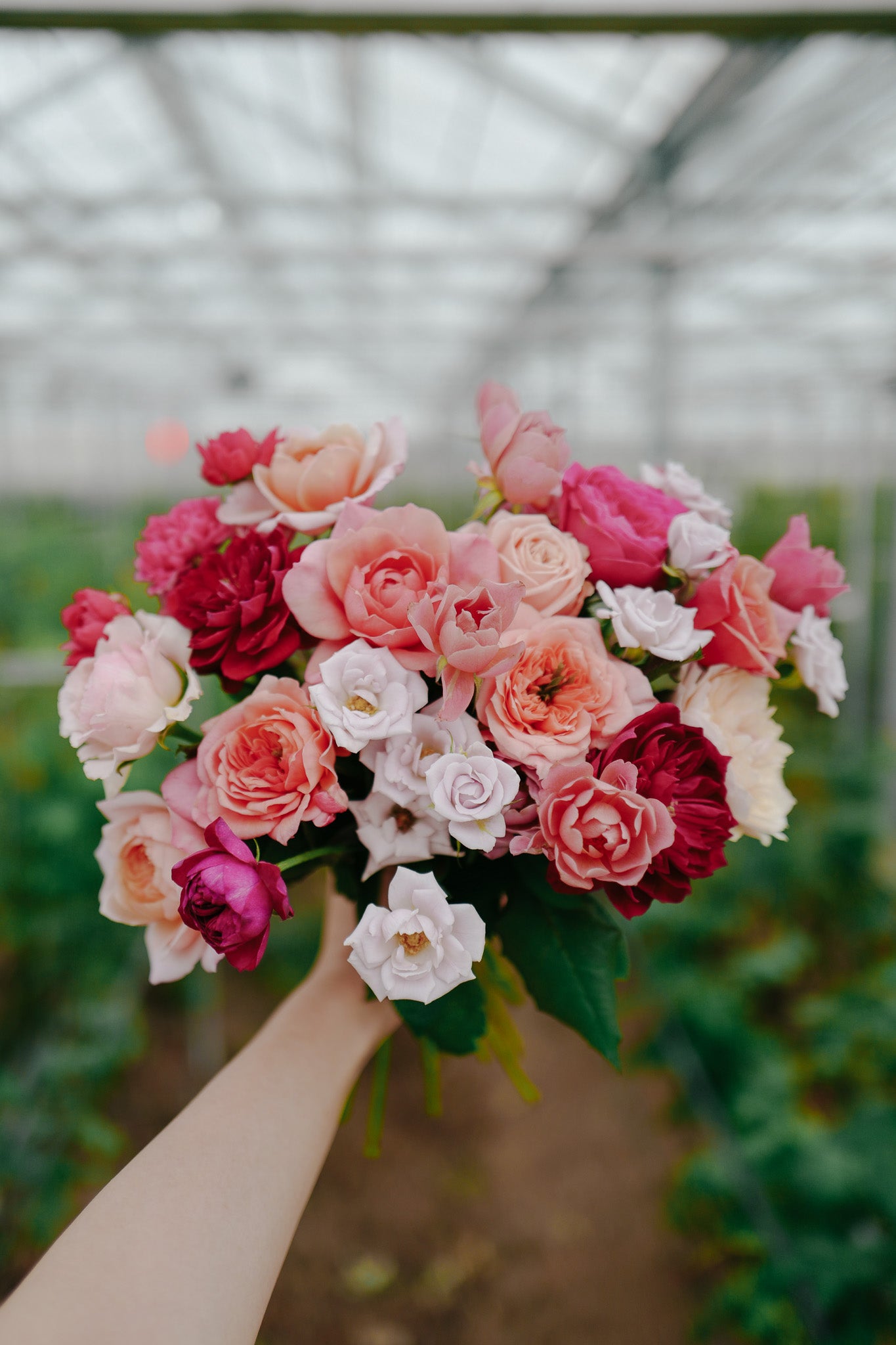 その時収穫できたお花の中で、農園スタッフがおすすめだと思う品種をセレクトして束ます。