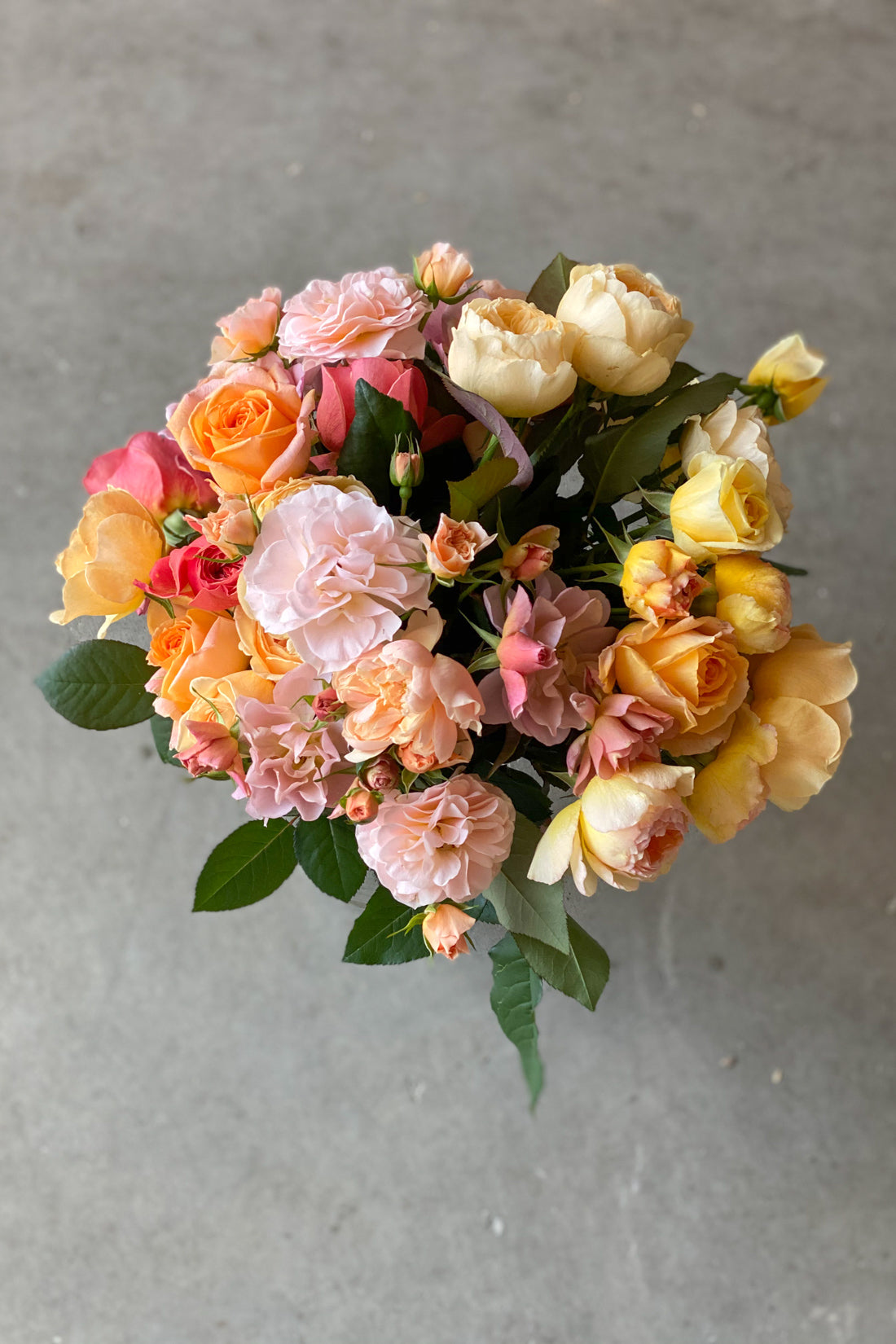 「わばら束」は、農園で収穫したばらたちを、そっと束ねてお届けする産地直スタイル。