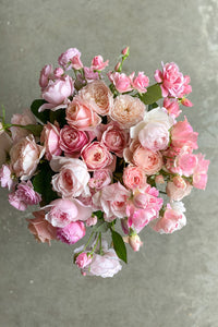 深みのあるピンク色から、淡い色のピンク色まで、WABARAのいろいろなピンク色のばらを織り交ぜて制作いたします。