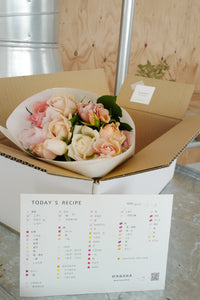 そのときあるお花を、スタッフが丁寧に摘んでお届けいたします。ラッピングもご対応しておりません。