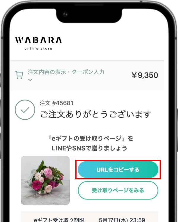 購入後に購入者様宛に届くメール から受け取りURLをコピーします