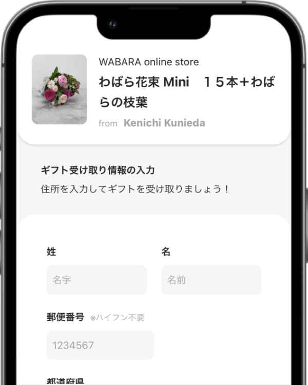 お相手の方が住所を入力するとギフトとして商品が届きます。