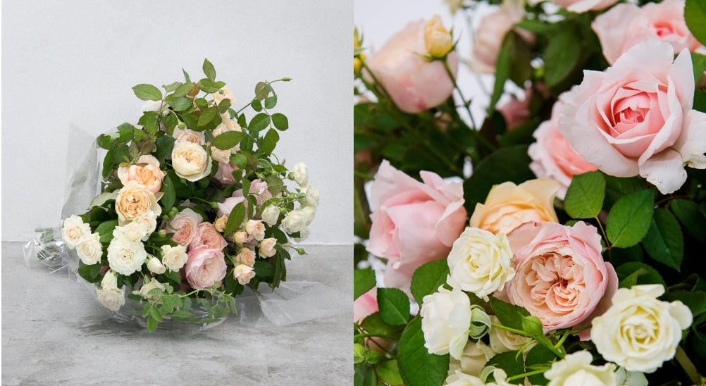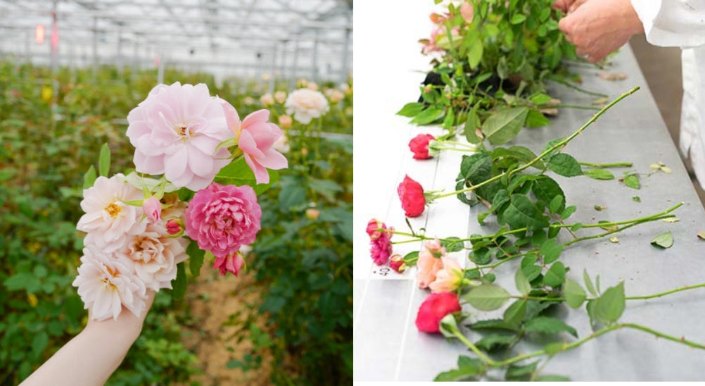 切り花やブーケの他、食無肥料・無農薬で育てられたばらを使用したお茶やスキンケア用品など多彩なギフトをご用意しています。