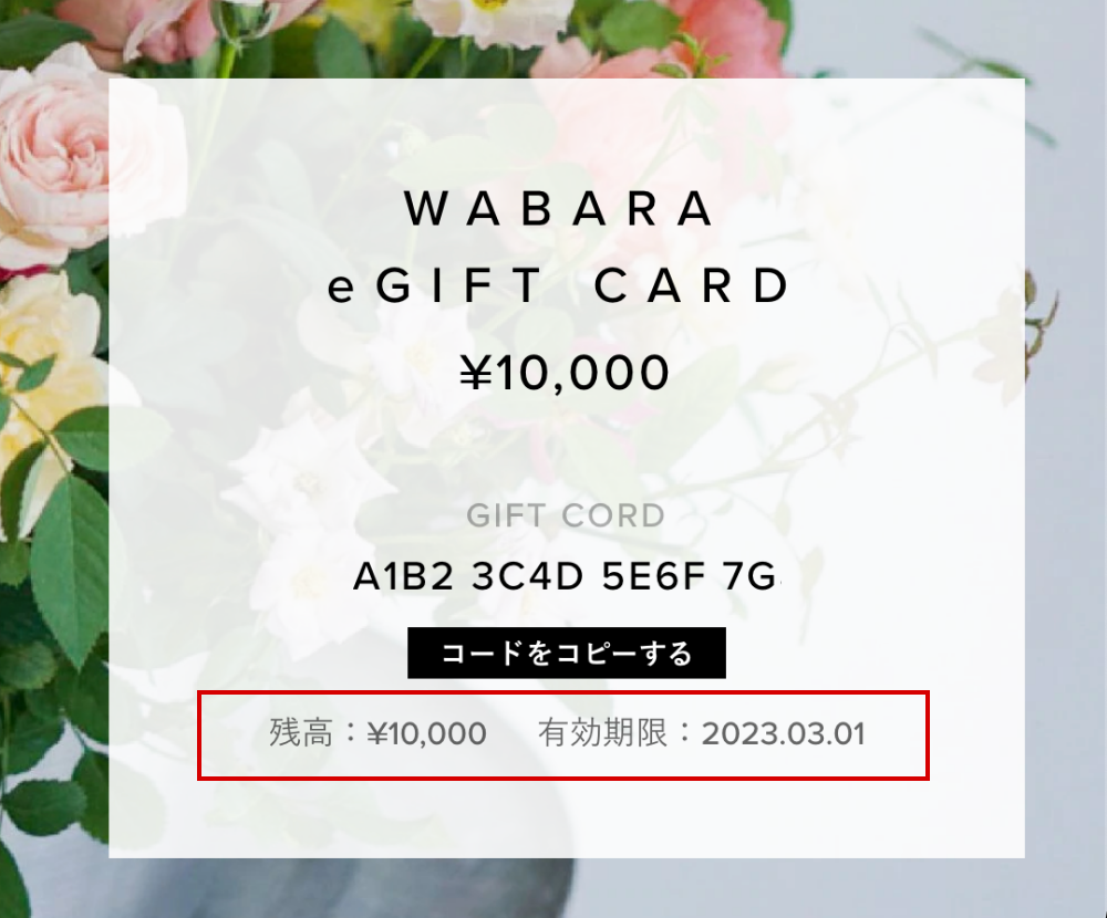eギフトカードに表示される「ギフトカードコード」をお控えください。