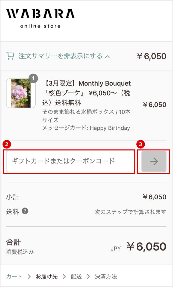 WABARAのeギフトカードをお届けします。eギフトカードを見る(以下のURLにアクセス)