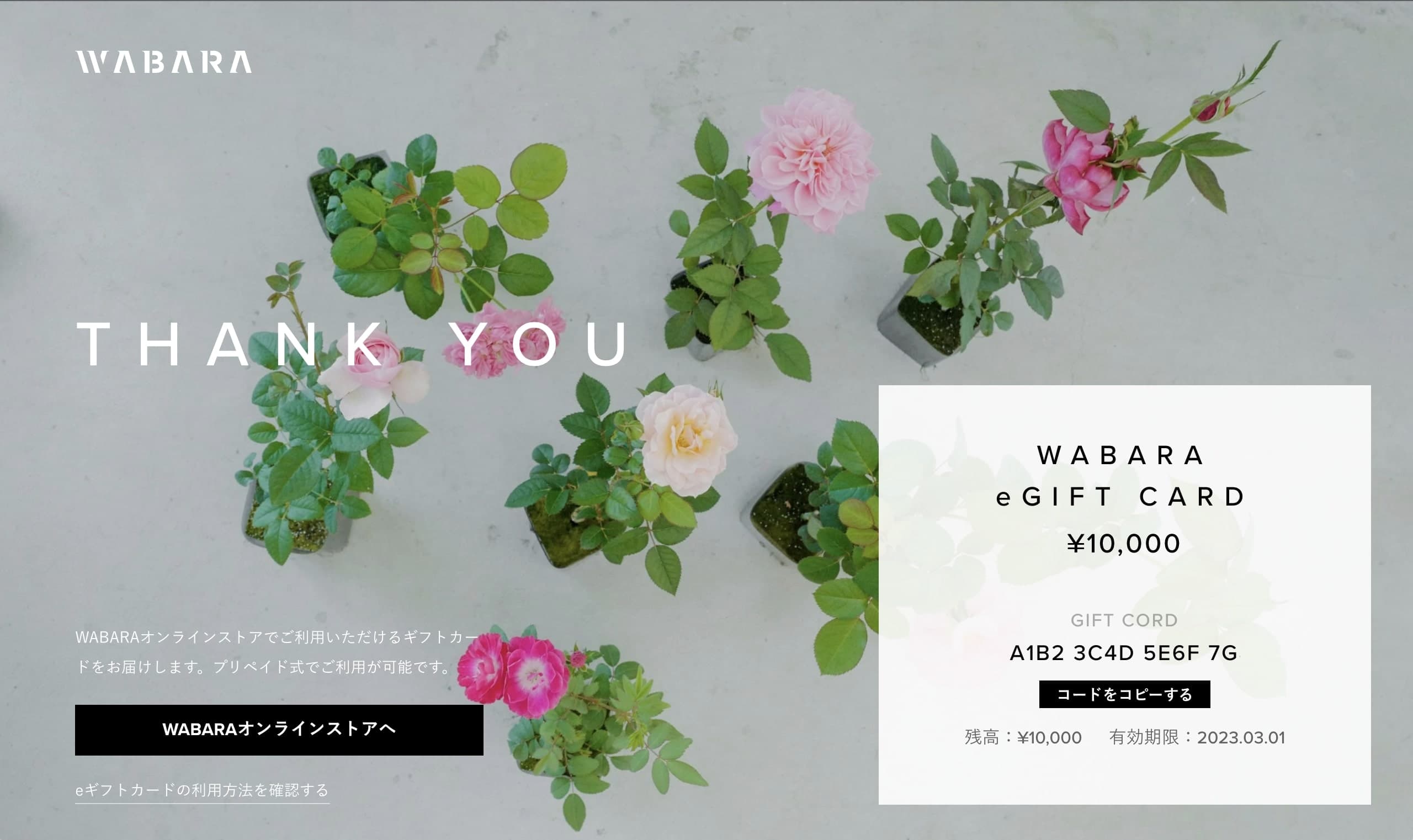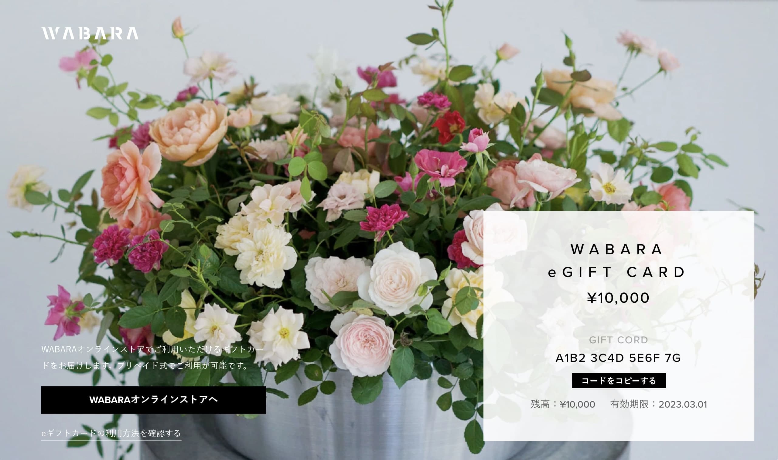 贈り主さまの想いを込めて、 WABARAのeギフトカードをお届けします。