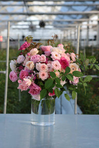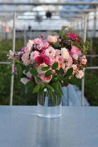 農園で育つばらたちの姿そのものを表現すべく、お花だけでなくばらの枝葉を入れてつくるわばらの花束。