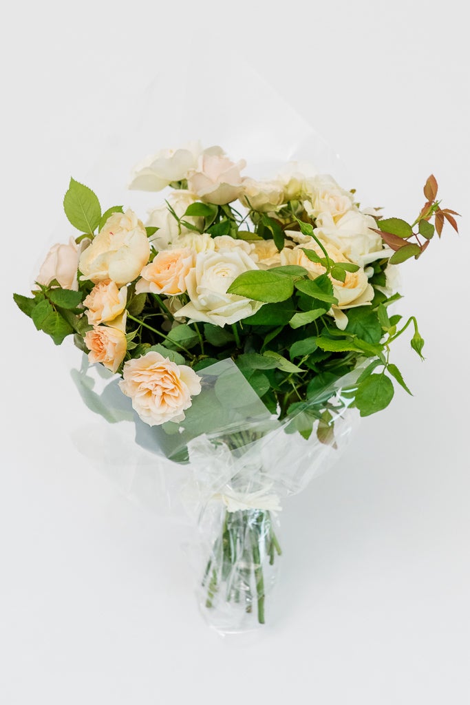 花にくわえ、生きたばらの象徴ともいえる、伸びやかな茎葉もお入れいたします。